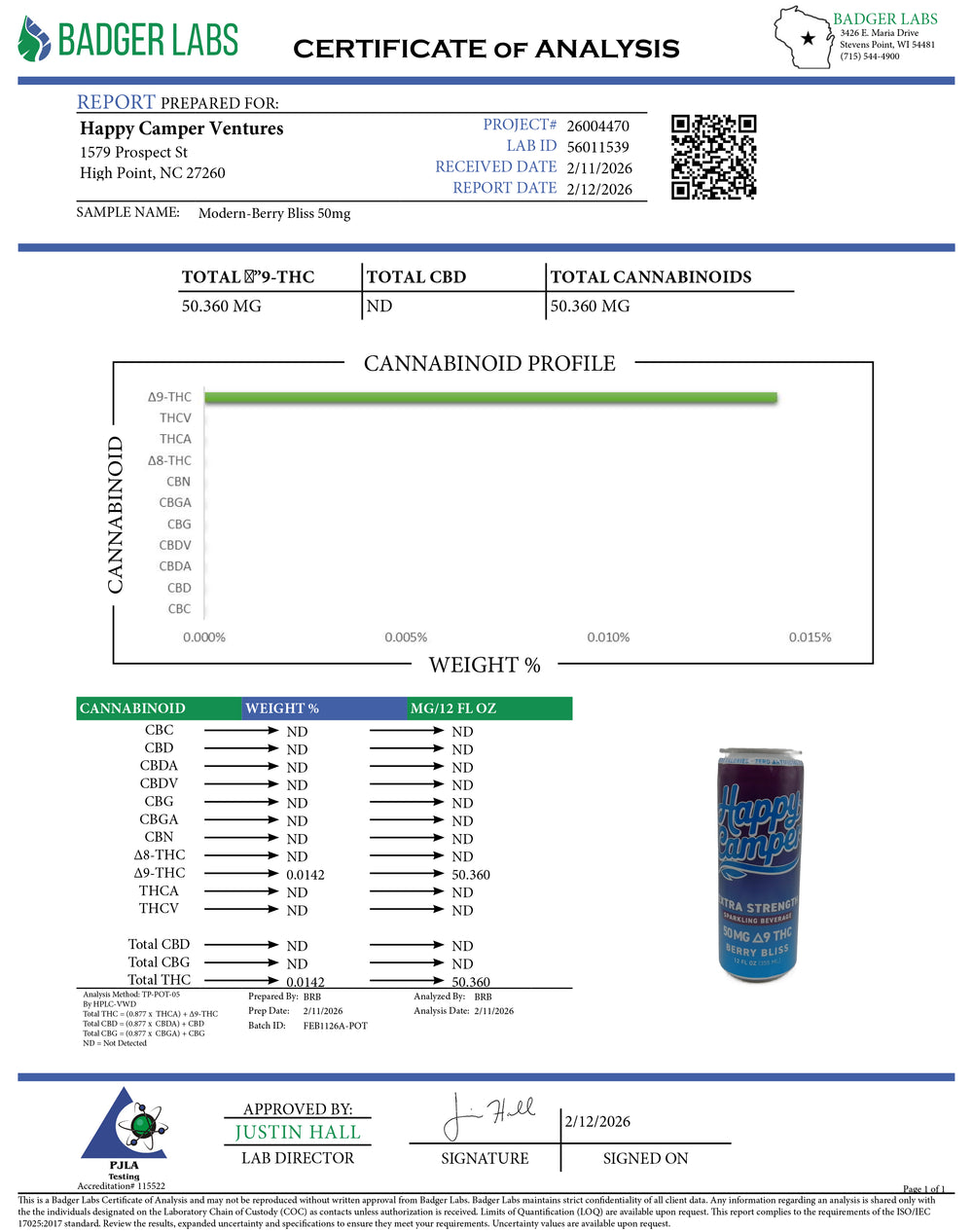 Happy Camper beverages are crafted with premium, lab-tested hemp extract using a proprietary infusion process that ensures purity, consistency, and fast-acting effects. Each drink blends real fruit flavors, natural ingredients, and sparkling water for a refreshingly smooth and elevated experience.